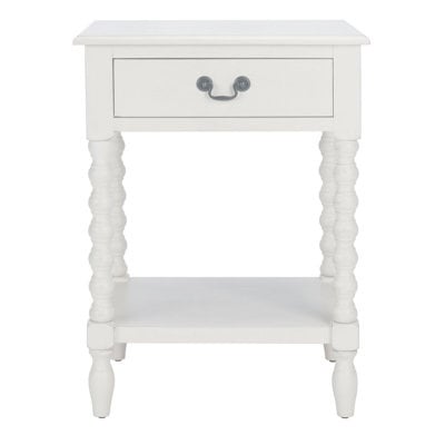 Create an accountClassic farmhouse charm meets contemporary decor in this Athena accent table. Athena’s modernized ball-turned legs are beautifully highlighted by its distressed white finish, while an open bottom shelf and slim drawer provide ample storage and display space.