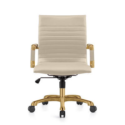 Create an accountMake a statement in your workspace with the Harris Office Chair, where style meets functionality. The soft faux leather upholstery with reinforced stitching adds durability and a polished look. A gold steel frame provides stability, while adjustable height and tilt lock let you customize your seating position. With high-density foam padding and quick assembly, this chair is built for both productivity and elegance.