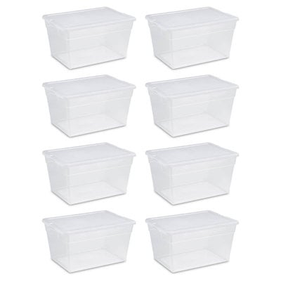 Create an accountClear through your clutter and bring some organization to your closet, classroom, storage room, or garage with this Pack of Sterilite Plastic Stacking Storage Container Tote with a Lid. This tote features a see-through base that allows contents to be easily identified and a white lid that snaps firmly onto the base to keep contents contained and secure. Ideal for storing small items while fitting conveniently on closet shelving, these storage boxes are suitable for organizing. Indexed lids allow for secure stacking, making for space-saving vertical storage. The durable plastic containers feature built-in grips and snap-close lids that keep out bugs, dirt, and dust so your stored items stay safe and clean. Organize holiday decor, hair accessories, tools, crafting supplies, and much more securely with this totes pack. Make an organization a reality with the Plastic Stacking Storage Container Tote with Lid from Sterilite.