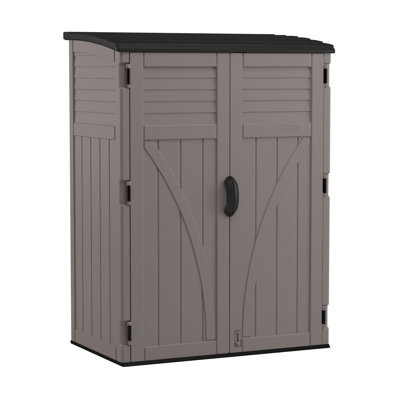Create an accountThis Large Vertical Shed is designed to supply generous storage space for outdoor gear, tools, equipment, firewood, sporting goods, and more. It's fashioned with multi-wall resin and is outfitted with adjoining door handles to attach a padlock (sold separately). To augment this unit with shelving, there are three sets of notches in 16 in. increments that allow you to install up to three shelves (not included). Let this Vertical Storage Shed do some of the heavy lifting for you. This Vertical Shed offers a great solution for those with a smaller space and big storage needs. Offering 54 cu. Ft. of storage space and a customizable interior that can accommodate up to three shelves (not included), the shed is made of durable, multi-wall resin panels specially designed for strength and stability. With pad-lockable door handles and a reinforced floor for heavier items, you can safely store all your outdoor essentials with ease. A small space doesn't mean you have to compromise on storage!