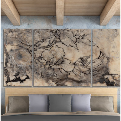 Create an accountMade to look like fashioned stonework, this 3-piece giclee print brings a stunning, traditional floral design to grace your walls with glam style. The central square frame is larger than the two on each side for a more dimensional vibe. It comes in spackled, textured gray, black, and brown tones for a more neutral color palette and an earthy look. This acrylic painting triptych is printed on canvas and wrapped around a wooden frame. Wall hooks are also included for hassle-free hanging right out of the box.
