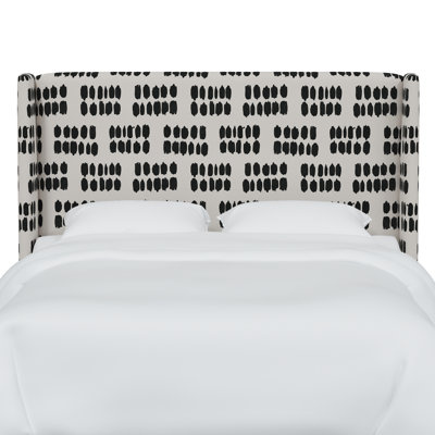 Create an accountThis upholstered headboard delivers an updated take on its streamlined wingback silhouette with a bold pattern drawn from global textiles. Crafted in the USA from a blend of solid and engineered wood, this headboard has a wingback design with 100% cotton upholstery. The upholstered features clusters of irregular inkblots that are arranged into a semi-striped design. This headboard is designed to mount to your bed frame, and comes with pre-drilled holes and included mounting hardware.