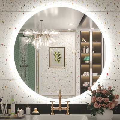 Create an accountBring a modern & contemporary style to your house decor with this round led mirror. Adopting CRI 90+ high-quality LED lamp beads, the light is soft and even, bright enough. Equipped with adjustable brightness (10%-100%) and defog mode, two touch sensors can meet all your daily needs as a bathroom vanity mirror. This circle mirror also has a smart memory function that remembers your brightness setting you used last time. With a minimalist round aesthetic design, it can be flexibly installed in various areas, perfect for placing in the bathroom sink or bedroom dressing table or dressing room.