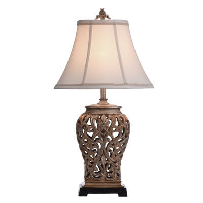 Create an accountAdd a touch of timeless elegance to your home with the Traditional Table Lamp. Its tannish-brown base, adorned with delicate open lace scroll detailing, brings a hint of vintage charm to any space. Topped with a matching finial, this lamp effortlessly balances beauty and function, casting a warm, inviting glow in your living room, bedroom, or home office. Perfect for creating a cozy, sophisticated atmosphere, it’s a classic piece that elevates both style and ambiance.