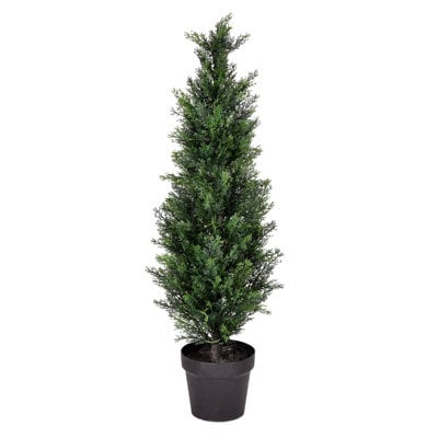 Create an accountVickerman Artificial Potted Green Cedar Tree. Introduce an eye-catching and low-maintenance accent to your home decor with Vickerman's Faux Cedar Tree. Its natural green cedar leaves make it a sophisticated and modern option to incorporate some greenery into your indoor or outdoor living spaces. This artificial tree is made of high-quality materials that are UV-resistant, making it a perfect choice for your front door, patio, or any other area that's exposed to sunlight. This artificial tree is an excellent option if you want to add some greenery to your home without the need to maintain live plants. Ideal for both indoor and outdoor use, this UV-resistant faux tree is perfect for those who love artificial topiaries, topiary trees, and faux cedar plants.